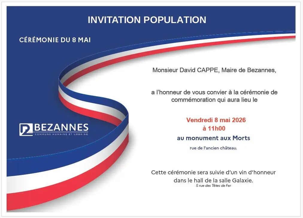 Invitation population Cérémonie de commémoration du 8 mai